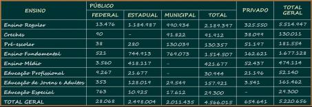 No que diz respeito aos dados estatísticos da área da Educação, constam