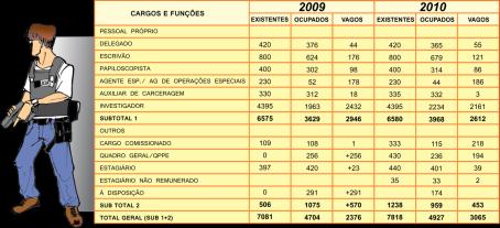 déficit de cargos vagos para 3.065, ou 29%, em relação ao exercício de 2009.