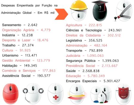 Segurança Pública 6,31% e apenas 0,01% na Função Saneamento.