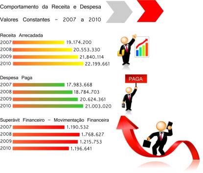 Gráfico 5-Comportamento da Receita e Despesa – Valores Constantes – 2007 a 2010 (R$ mil)
