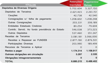 Nas Inscrições/Retenções destacam-se os Depósitos de Diversas Origens no