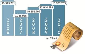 No exercício de 2010 o estoque da Dívida Ativa totalizou R$ 13.6 bilhões.