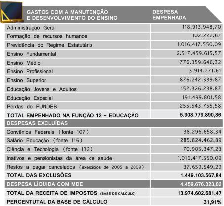 Manutenção e Desenvolvimento do Ensino, em valores atualizados, é demonstrada