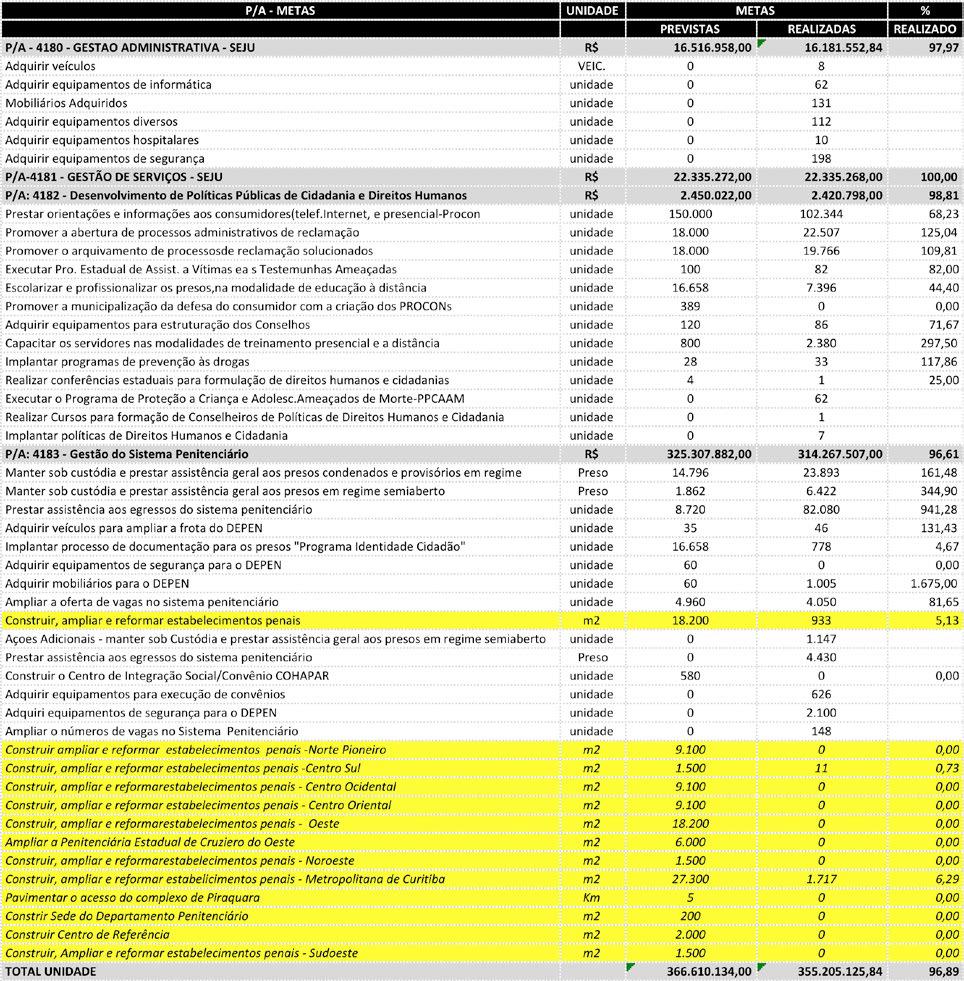 TABELA 3 – EXECUÇÃO DAS METAS FÍSICAS DA SEJU