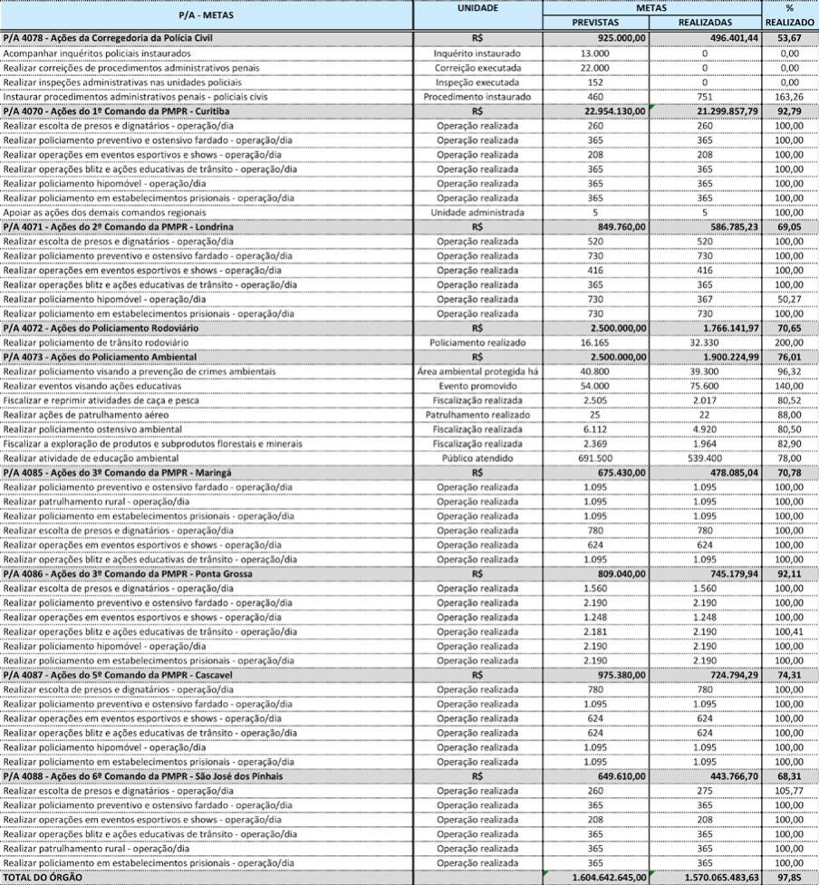 policiais diversas – 2177%; Realizar cursos de aperfeiçoamento para as carreiras da