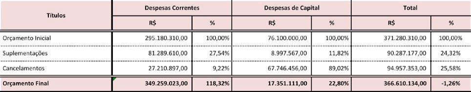 Destaca-se que houve um cancelamento de 89% das despesas de capital,