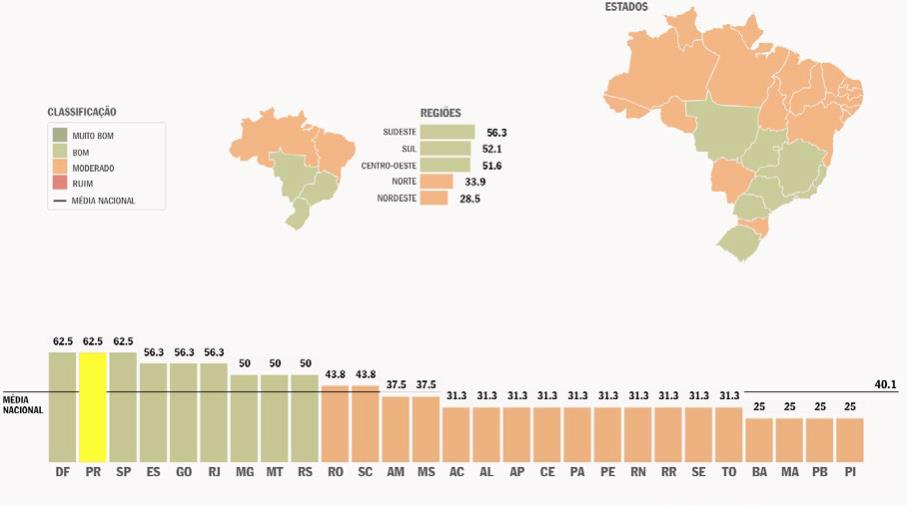 , o Estado do Paraná está entre os três melhores estados, com performance